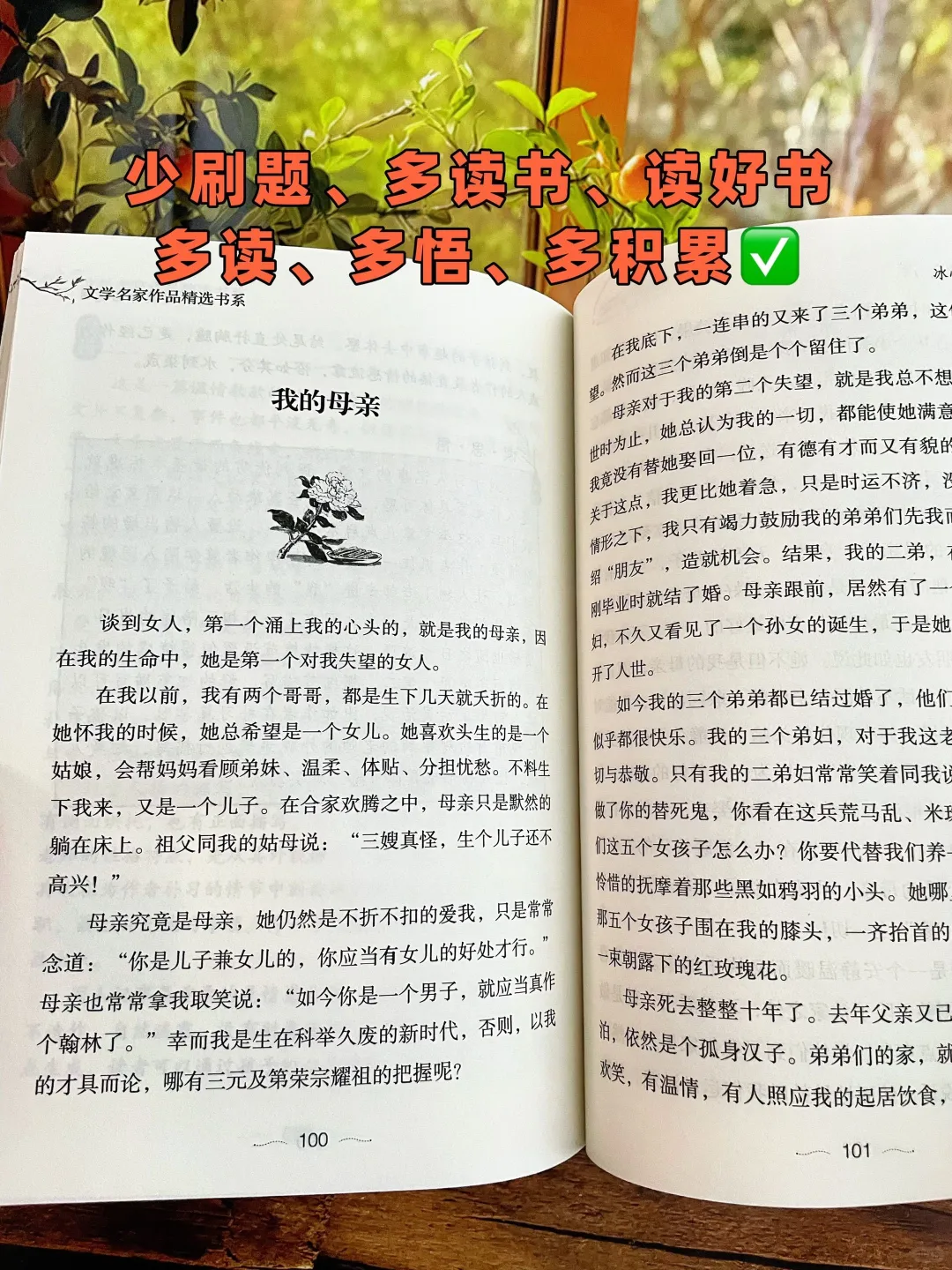 我的书架总像在默默生长,不同颜色、厚度、题材的书脊肩并肩站着,像无数个平行世界在发光。随手抽出一本,就是一场灵魂奇遇——读别人的故事,补自己的生命拼图。\n🌱最近迷上「漫读模式」,不分小说哲学还是游记,抓到哪本读哪本。读着读着发现,真正的好文字会自己跳出来敲打你。某个午后读到\"人生不是轨道是旷野\",突然就通了:何必急着赶路?那些被文字点亮的顿悟时刻,才是阅读给我的彩蛋。\n☀清晨总被窗帘上的光之舞叫醒。白色纱帘被晨光拓印成水墨画,光斑像跳跳糖在书页上蹦跶。唰地拉开窗帘,整个人瞬间被阳光「充电」——原来真的存在时光魔法,能把焦虑揉碎在光里。\n💤遮光帘倒成了我的「冥想导师」。大白天窝在床上读书,困了就放任自己眯十分钟,醒了继续穿越到书里的世界。昼夜界限模糊后,反而有种偷来时光的窃喜。这种「充电五分钟,续航两小时」的节奏,居然治好了我的效率焦虑。\n✨现在觉得读书像吃自助餐,不必正襟危坐。读到怦然心动的句子就折个角,看到晦涩的段落就跳着读。文字不再端着架子,倒像老友在耳边说:\"你看,生活可以这样过啊。\"\n#治愈系阅读 #慢生活提案 #心灵成长日记 #我的书架会说话 #反焦虑指南